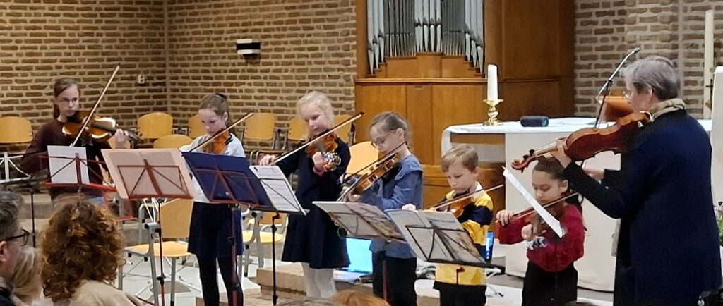 Het Woudenbergs Kamerorkest van de muziekschool onder leiding van Carla van der Heijden slot het concert af met bekende melodien van Dvorak en Schubert en daarna nog de Wodkapolka, om het nieuwe jaar uitbundig te vieren – uiteraard kregen de kinderen en luisteraars na afloop toch geen wodka maar limonade, thee koffie en iets lekkers.