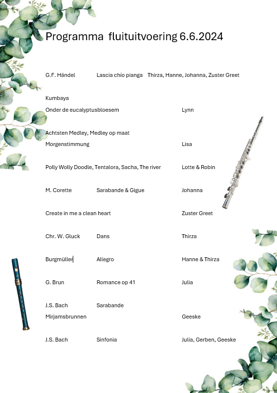Uitvoering fluitleerlingen 6.6.2024